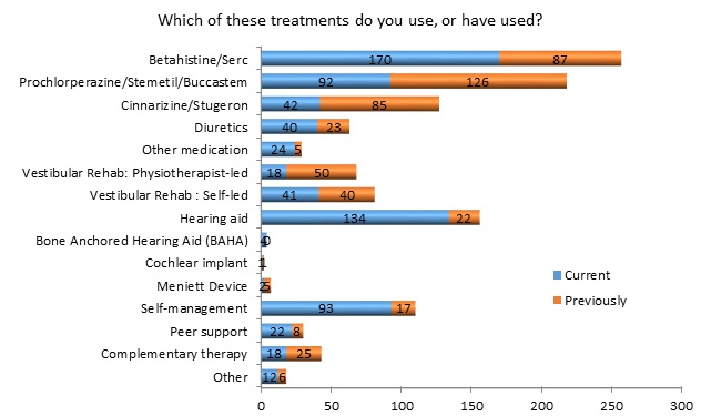 Almost all our respondents have taken betahistine and nearly two thirds still do. A recent review (2) suggested the tests used to prove its efficacy were not sufficiently robust to prove it works. However the number taking the drug does suggest many find comfort in taking it.